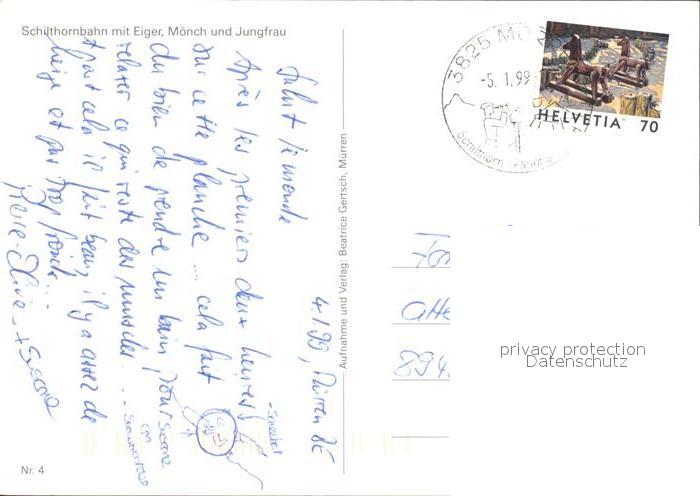 alte Postkarte Seilbahn Schilthorn Eiger Moench Jungfrau postalisch gelaufen Erhaltung siehe scans