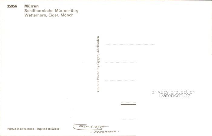 Seilbahn Schilthorn Muerren-Birg Wetterhorn Eiger Moench postalisch nicht gelaufen Erhaltung siehe scans