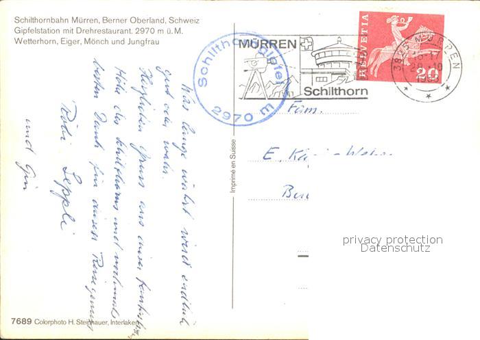 alte Postkarte Seilbahn Schilthorn Muerren Gipfelstation Drehrestaurant Wetterhorn Eiger postalisch gelaufen Erhaltung siehe scans