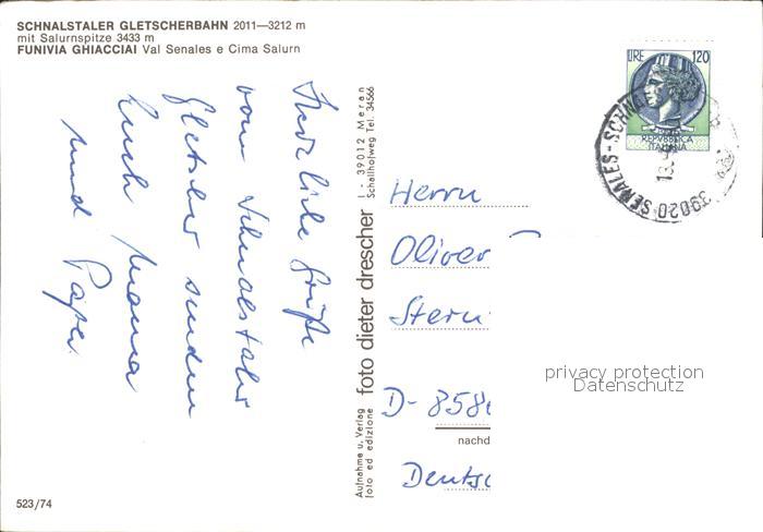 alte Postkarte Seilbahn Schnalstaler Gletscherbahn Salurnspitze postalisch gelaufen Erhaltung siehe scans