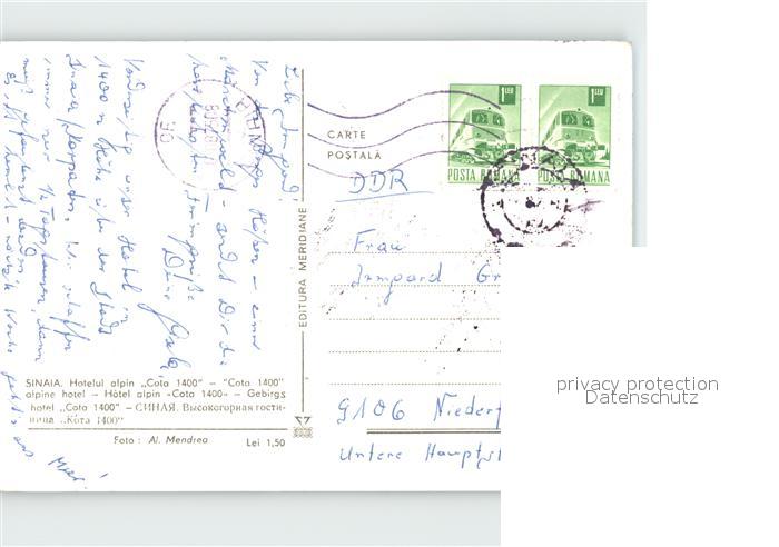 alte Postkarte Seilbahn Sinaia Hotelul alpin Cota 1400 postalisch gelaufen Erhaltung siehe scans