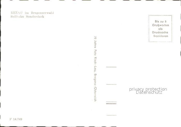 Seilbahn Sonderdach Bezau im Bregenzerwald postalisch nicht gelaufen Erhaltung siehe scans