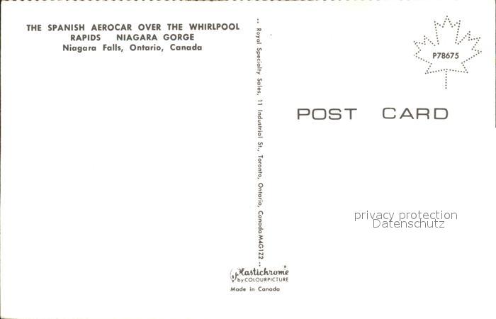 Seilbahn Spanish Aerocar Whirlpool Rapids Niagara Gorge Niagara Falls postalisch nicht gelaufen Erhaltung siehe scans