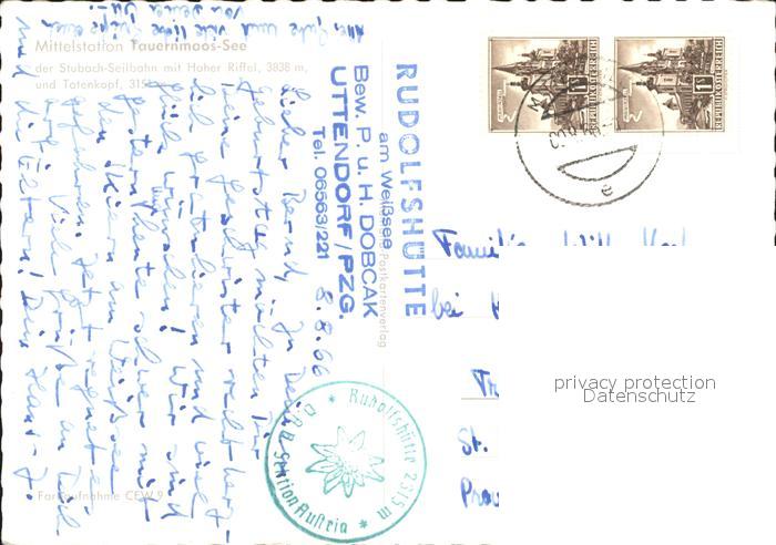 alte Postkarte Seilbahn Stubach Hoher Riffel Totenkopf Mittelstation Tauernmoos-See postalisch gelaufen Erhaltung siehe scans