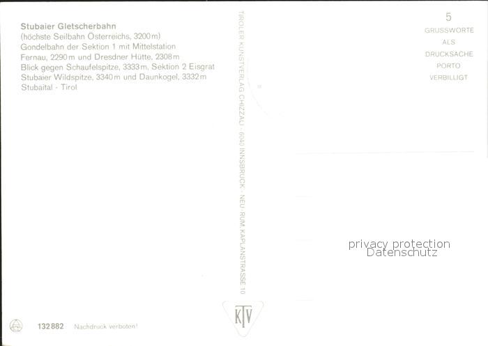 Seilbahn Stubaier Gletscherbahn Mittelstation Fernau Dresdner Huette postalisch nicht gelaufen Erhaltung siehe scans