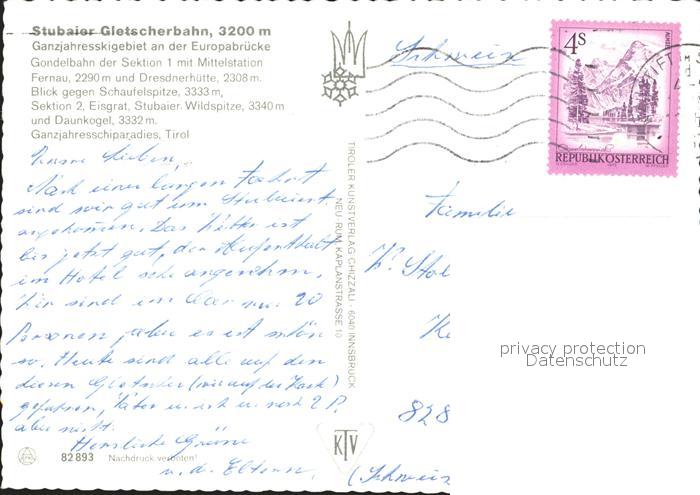alte Postkarte Seilbahn Stubaier Gletscherbahn Mittelstation Fernau Dresdnerhuette postalisch gelaufen Erhaltung siehe scans