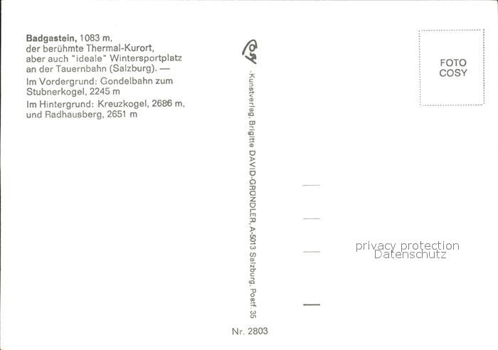 Seilbahn Stubnerkogel Badgastein Kreuzkogel Radhausberg postalisch nicht gelaufen Erhaltung siehe scans