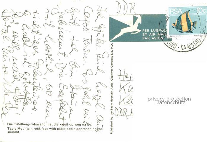 alte Postkarte Seilbahn Table Mountain Tafelberg Kapstadt postalisch gelaufen Erhaltung siehe scans [PaolaD17]
