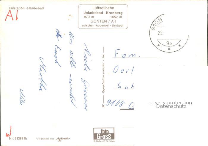 alte Postkarte Seilbahn Talstation Jakobsbad postalisch gelaufen Erhaltung siehe scans
