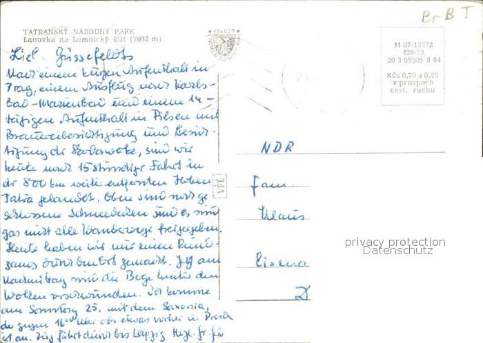 alte Postkarte Seilbahn Tatransky Narodny Park Lanovka na Lomnicky stit postalisch gelaufen Erhaltung siehe scans