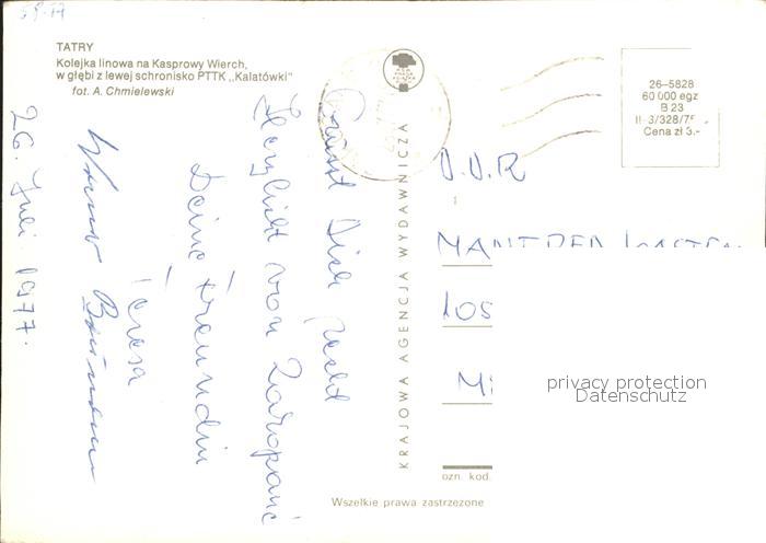 alte Postkarte Seilbahn Tatry Kasprowy Wierch postalisch gelaufen Erhaltung siehe scans