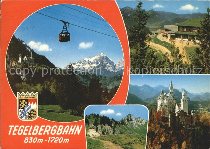 alte Postkarte Seilbahn Tegelberg Schloss Neuschwanstein postalisch gelaufen Erhaltung siehe scans