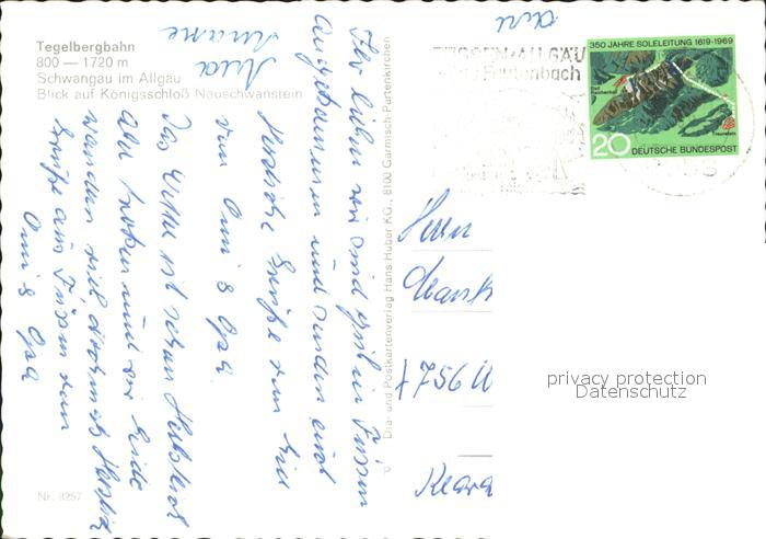 alte Postkarte Seilbahn Tegelberg Schwangau Allgaeu Koenigsschloss Neuschwanstein postalisch gelaufen Erhaltung siehe scans