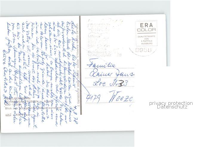 alte Postkarte Seilbahn Tegelberg Schwangau/Fuessen Koenigsschloss Neuschwanstein postalisch gelaufen Erhaltung siehe scans