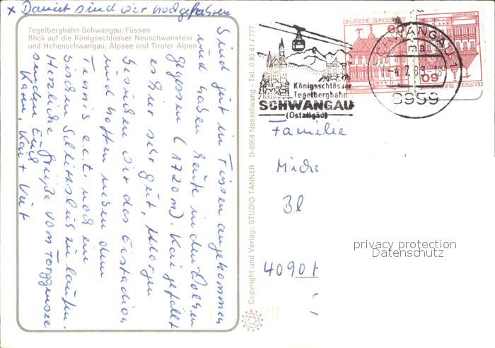 alte Postkarte Seilbahn Tegelberg Schwangau-Fuessen Schloss Neuschwanstein postalisch gelaufen Erhaltung siehe scans
