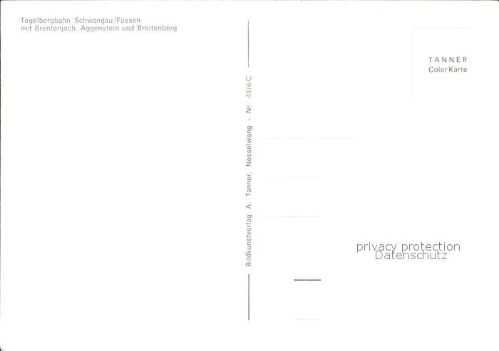 Seilbahn Tegelbergbahn Schwangau-Fuessen Brentenjoch Aggenstein Breitenberg postalisch nicht gelaufen Erhaltung siehe scans
