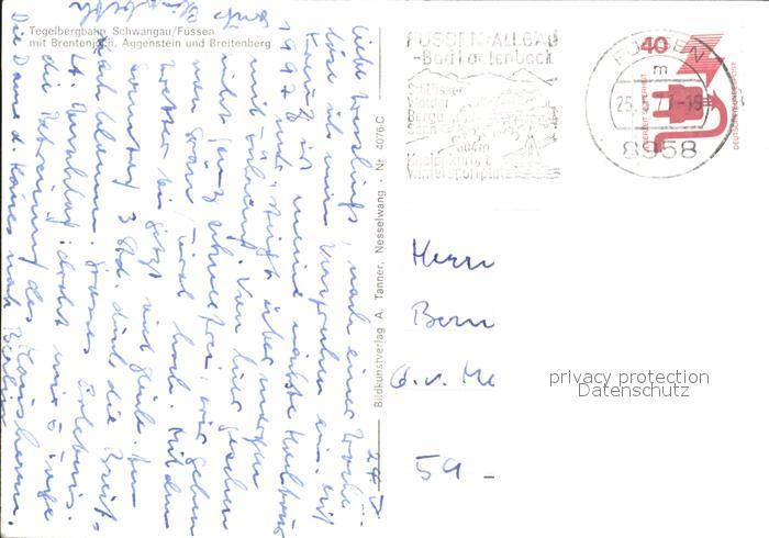 alte Postkarte Seilbahn Tegelbergbahn Schwangau-Fuessen Brentenjoch postalisch gelaufen Erhaltung siehe scans