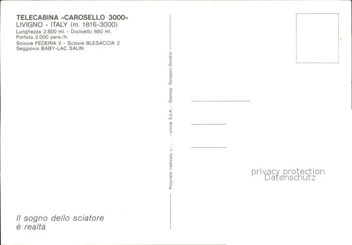 Seilbahn Telecabina Carosello 3000 Livigno postalisch nicht gelaufen Erhaltung siehe scans