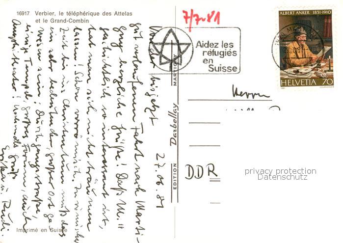 alte Postkarte Seilbahn Telepherique des Attelas Verbier Grand-Combin postalisch gelaufen Erhaltung siehe scans [PaolaD17]