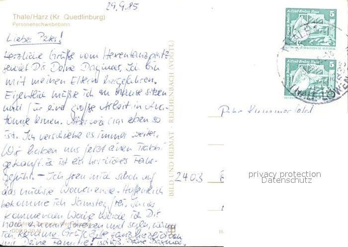 alte Postkarte Seilbahn Thale Harz postalisch gelaufen Erhaltung siehe scans