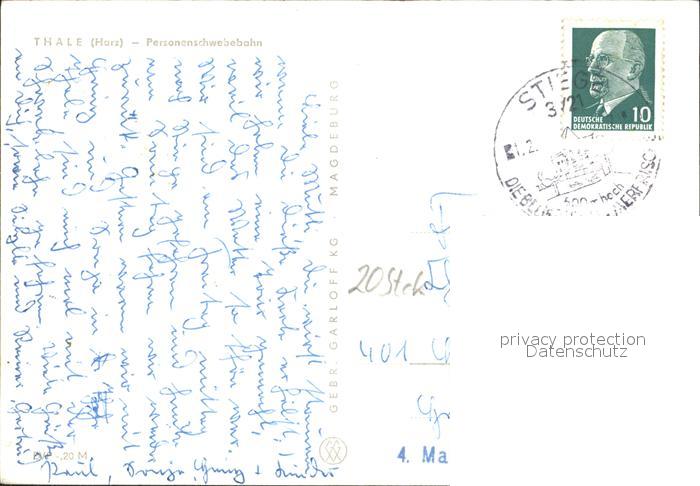 alte Postkarte Seilbahn Thale Harz postalisch gelaufen Erhaltung siehe scans