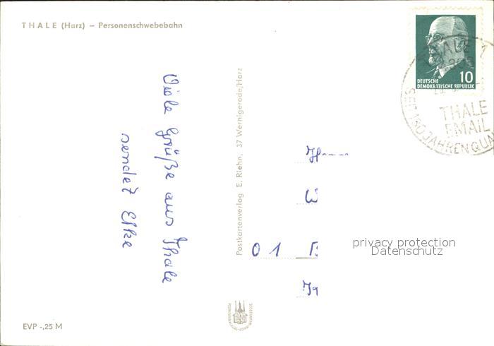 alte Postkarte Seilbahn Thale Harz postalisch gelaufen Erhaltung siehe scans