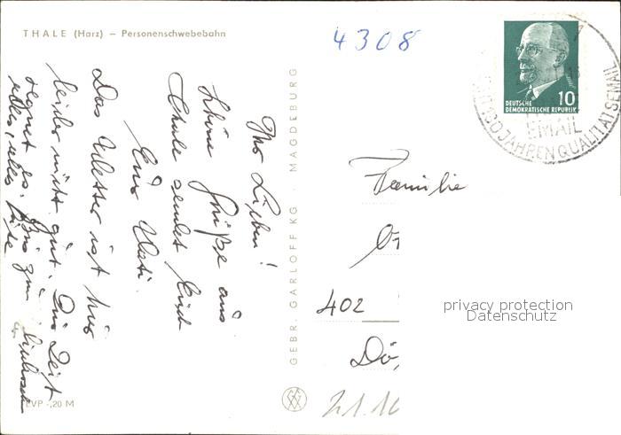 alte Postkarte Seilbahn Thale Harz postalisch gelaufen Erhaltung siehe scans