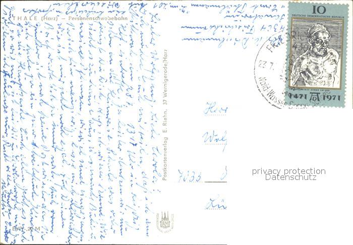 alte Postkarte Seilbahn Thale Harz postalisch gelaufen Erhaltung siehe scans