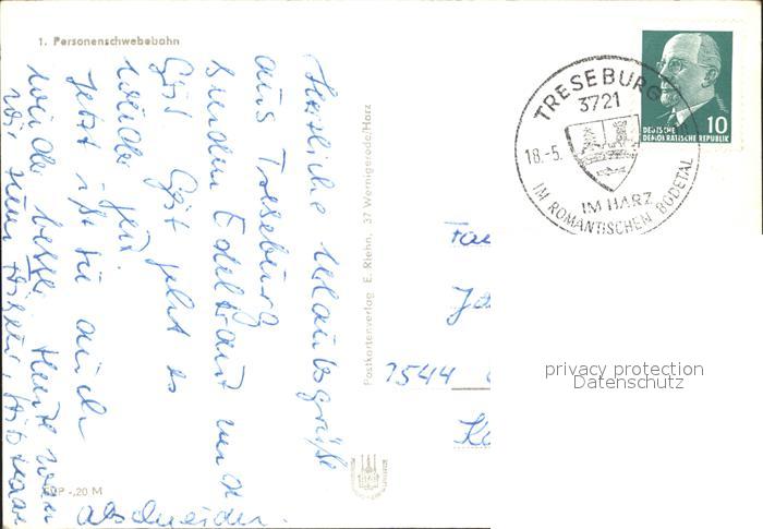 alte Postkarte Seilbahn Thale Harz postalisch gelaufen Erhaltung siehe scans