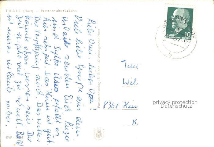 alte Postkarte Seilbahn Thale Harz postalisch gelaufen Erhaltung siehe scans