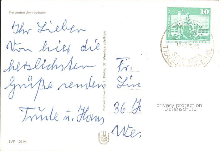 alte Postkarte Seilbahn Thale Harz postalisch gelaufen Erhaltung siehe scans