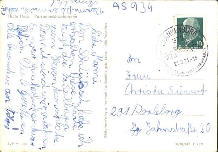 11430805 Seilbahn Thale/Harz KatCode 22040000000400