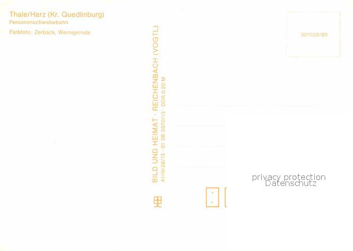 Seilbahn Thale Harz postalisch nicht gelaufen Erhaltung siehe scans [PaolaD17]