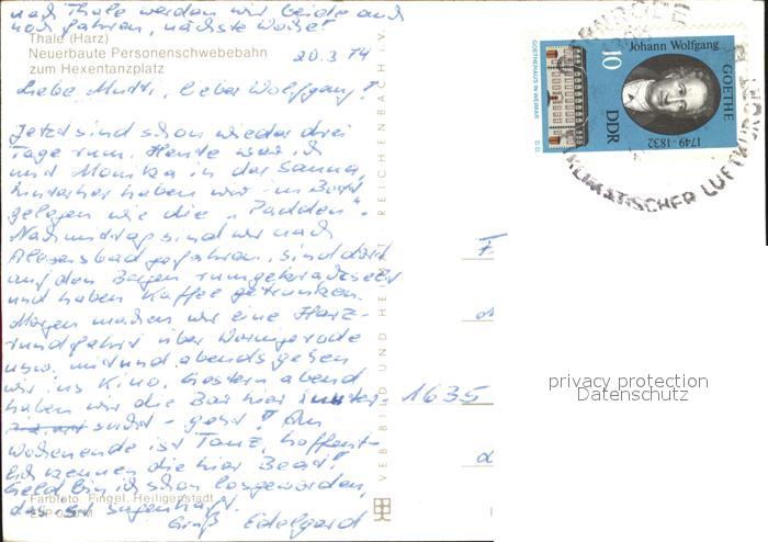 alte Postkarte Seilbahn Thale Harz postalisch gelaufen Erhaltung siehe scans [PaolaD17]