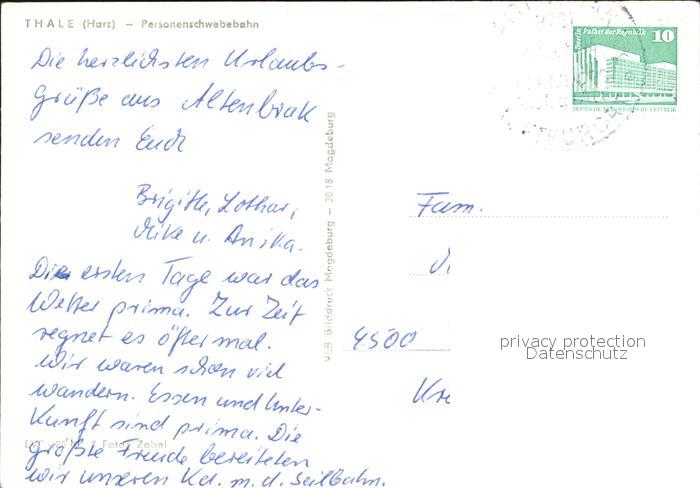 alte Postkarte Seilbahn Thale Harz postalisch gelaufen Erhaltung siehe scans
