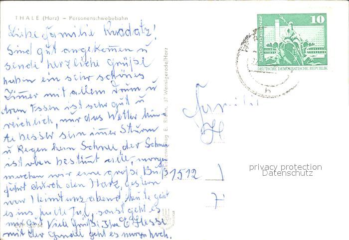 alte Postkarte Seilbahn Thale Harz postalisch gelaufen Erhaltung siehe scans