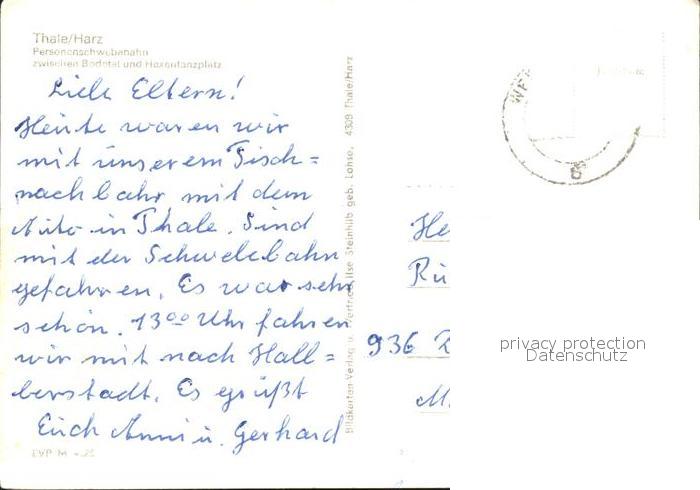 alte Postkarte Seilbahn Thale Harz postalisch gelaufen Erhaltung siehe scans