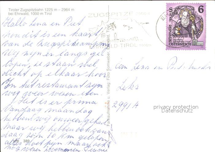 alte Postkarte Seilbahn Tiroler Zugspitzbahn Ehrwald postalisch gelaufen Erhaltung siehe scans