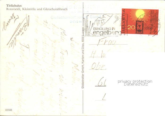 alte Postkarte Seilbahn Titlis Rotstoeckli Kleintitlis Gletscherabbruch postalisch gelaufen Erhaltung siehe scans