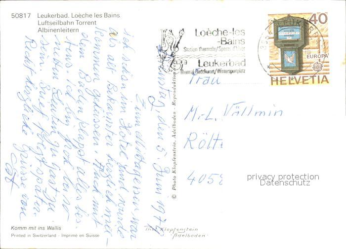 alte Postkarte Seilbahn Torrent Albinenleitern Leukerbad Loeche les Bains postalisch gelaufen Erhaltung siehe scans