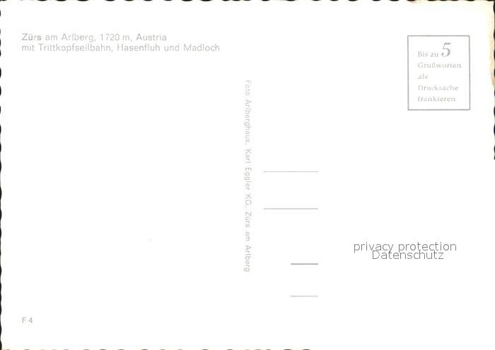 Seilbahn Trittkopf Hasenfluh Madloch Zuers am Arlberg postalisch nicht gelaufen Erhaltung siehe scans