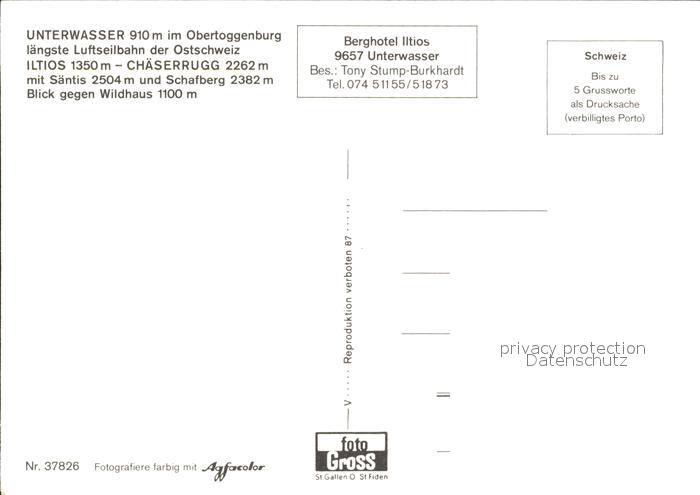 Seilbahn Unterwasser Iltios Chaeserrugg Saentis Schafberg Wildhaus postalisch nicht gelaufen Erhaltung siehe scans