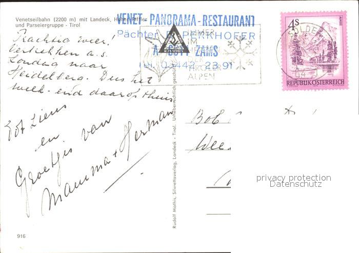 alte Postkarte Seilbahn Venet Landeck Hoher Riffler Parseiergruppe postalisch gelaufen