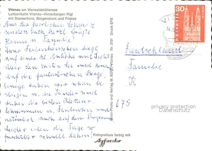 alte Postkarte Seilbahn Vitznau-Hinterbergen Rigi Vierwalstaettersee Stanserhorn postalisch gelaufen Erhaltung siehe scans