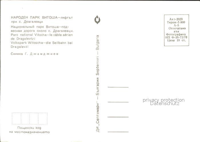 Seilbahn Volkspark Witoscha Dragalevzi postalisch nicht gelaufen Erhaltung siehe scans