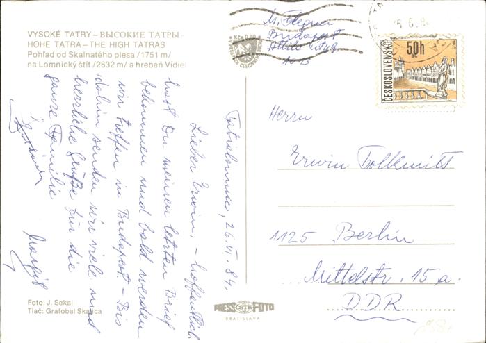 71445619 Seilbahn Vysoke Tatry Tschekoslowakei KatCode 22040000000400