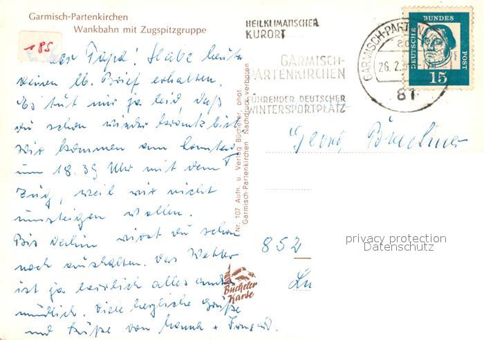 alte Postkarte Seilbahn Wankbahn Zugspitzgruppe Garmisch-Partenkirchen postalisch gelaufen Erhaltung siehe scans [PaolaD17]