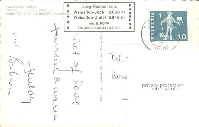 alte Postkarte Seilbahn Weissfluhgipfel Davos-Parsenn postalisch gelaufen Erhaltung siehe scans