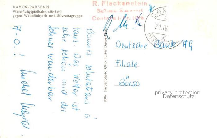 alte Postkarte Seilbahn Weissfluhgipfel Davos-Parsenn Silvrettagruppe postalisch gelaufen Erhaltung siehe scans [PaolaD17]