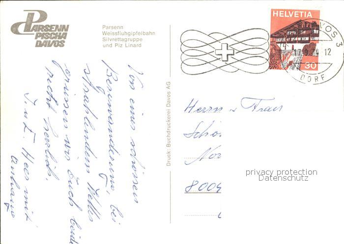 alte Postkarte Seilbahn Weissfluhgipfel Parsenn Silvrettagruppe Piz Linard postalisch gelaufen Erhaltung siehe scans